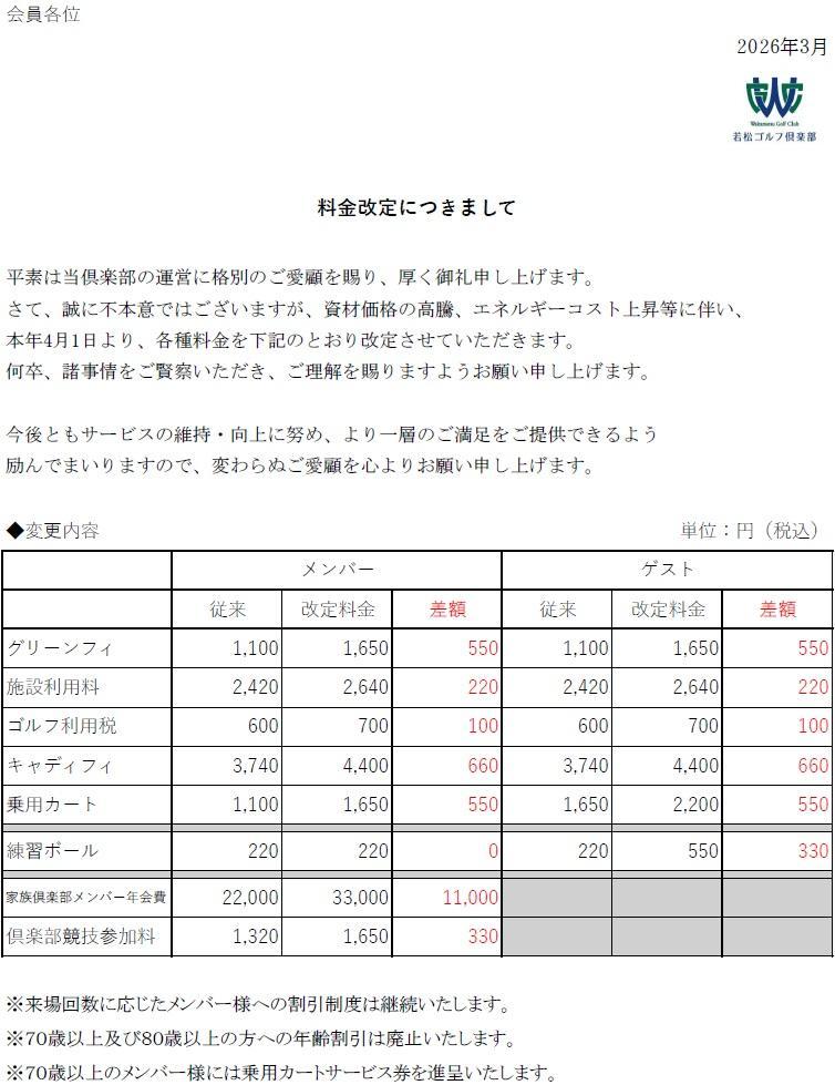 倶楽部競技以外でのご予約取消(キャンセル)料の取扱いについて