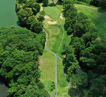 グリーン手前バンカーが深く、左サイドがOBのため、ティグラウンドでの風の読みと距離感が必要。