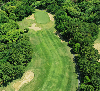 インコースで1番難易度が高い。ティショットで、左サイドに行くと松林が邪魔してグリーンが狙えない。ティショットの状況によりグリーンを狙うショットの戦略を考える必要がある。