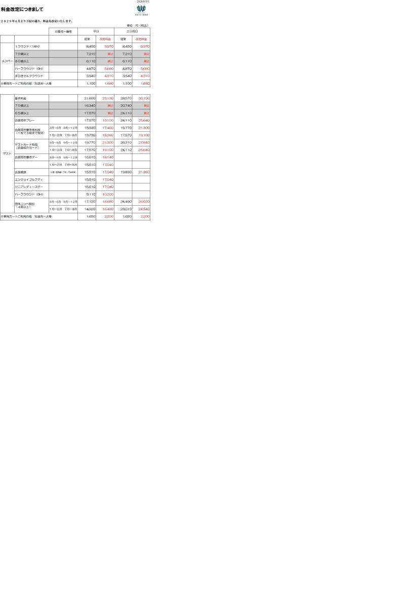 倶楽部競技以外でのご予約取消(キャンセル)料の取扱いについて